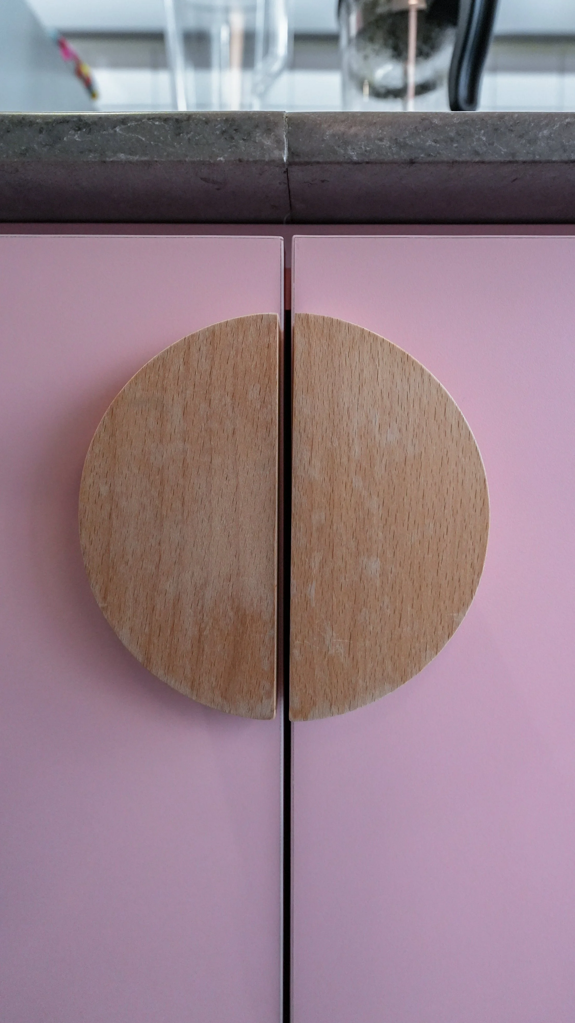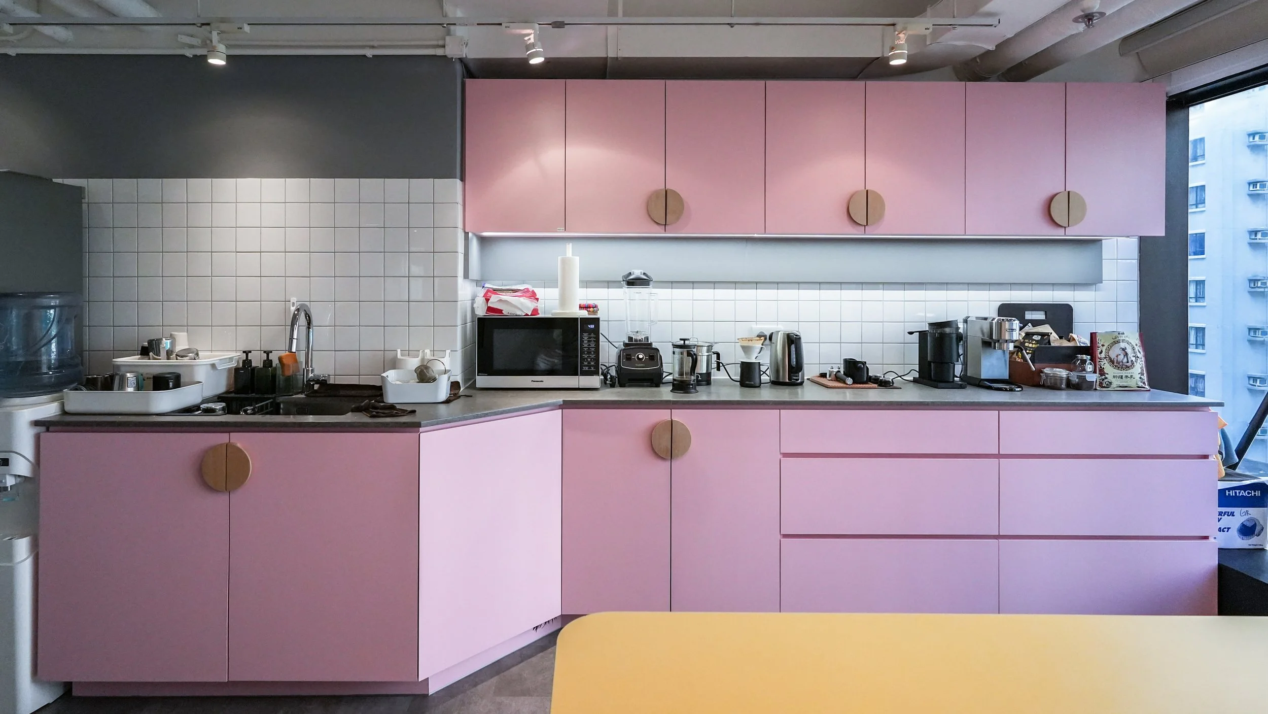 Floor-to-ceiling cabinets in sleek matte finishes with bespoke brand handles